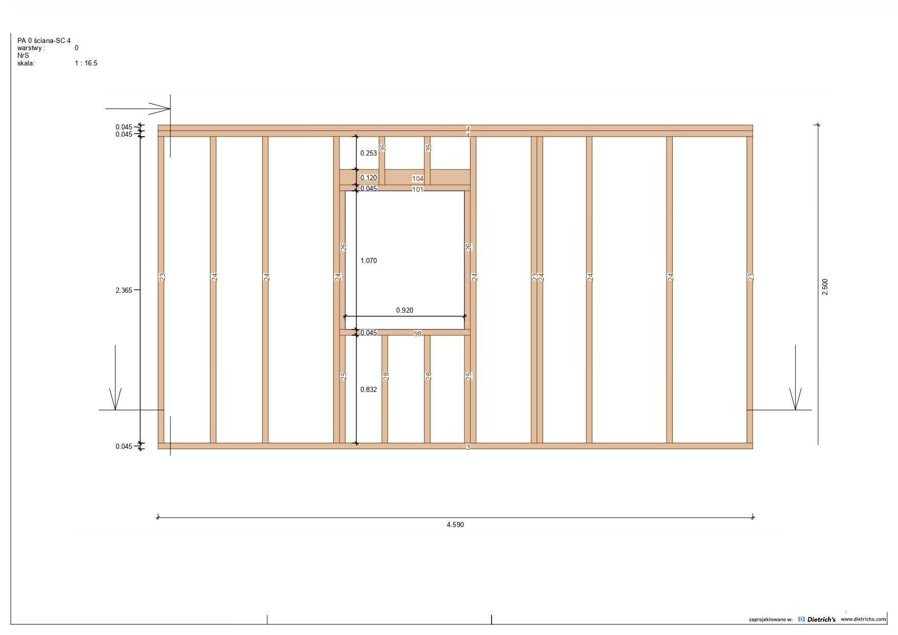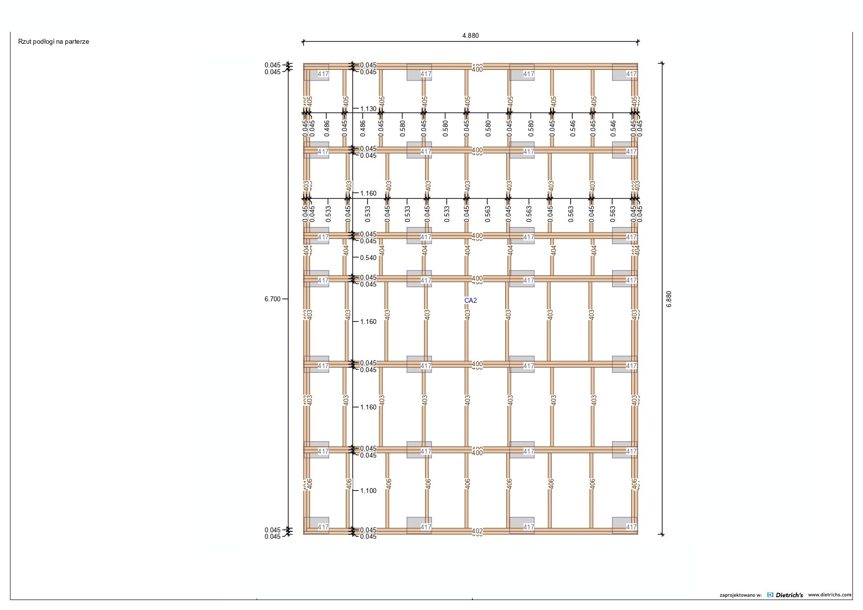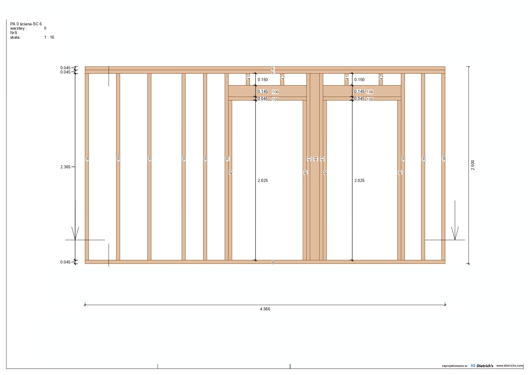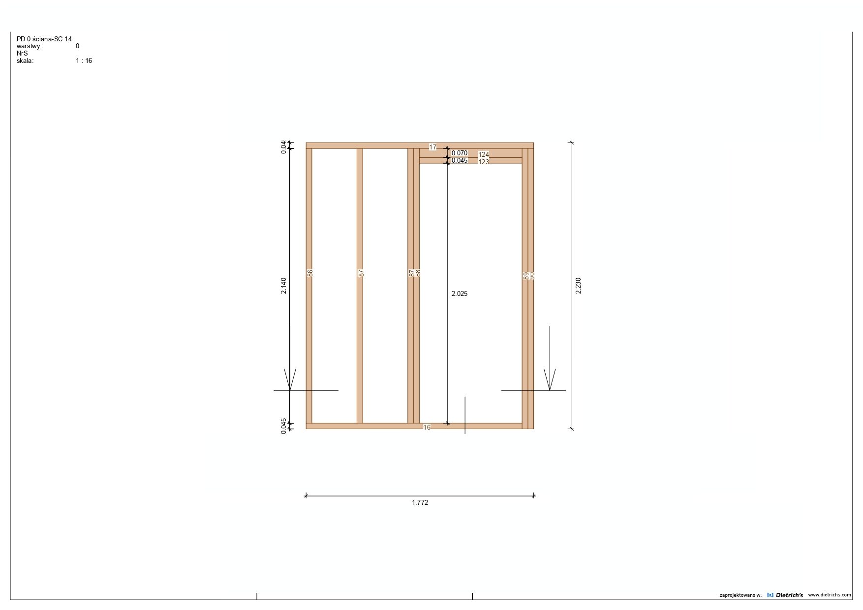 Większość belek użytych w konstrukcji ma grubość 145 mm x 45 mm.