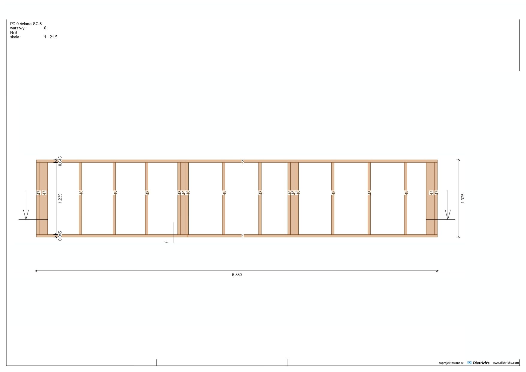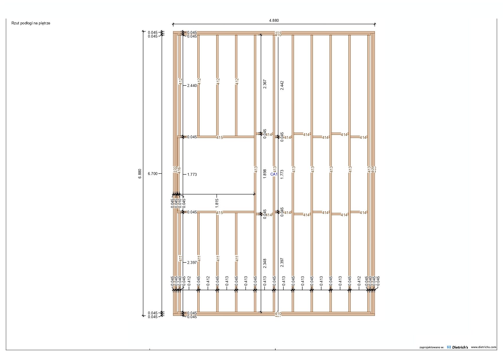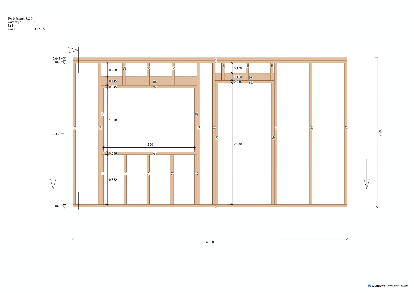 Większość belek użytych w konstrukcji ma grubość 145 mm x 45 mm.
