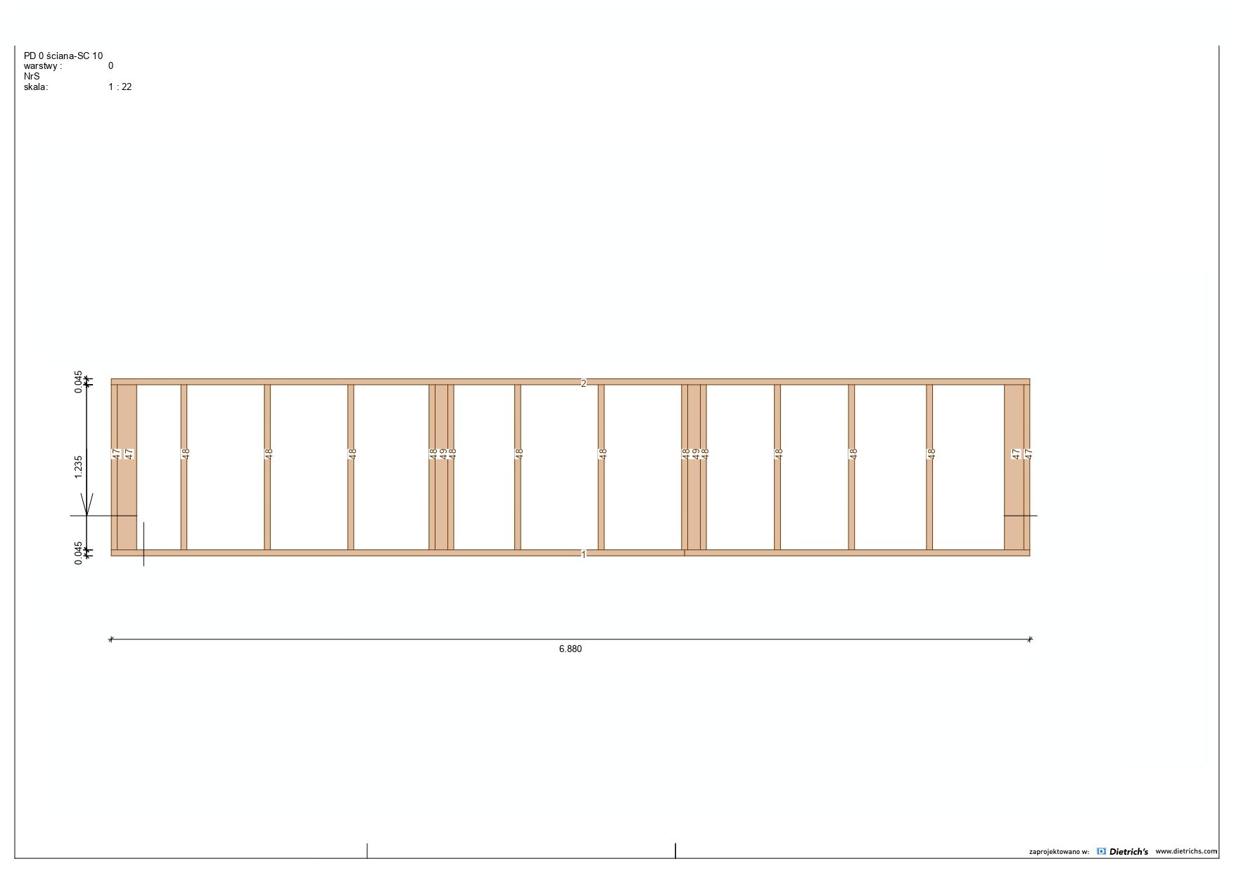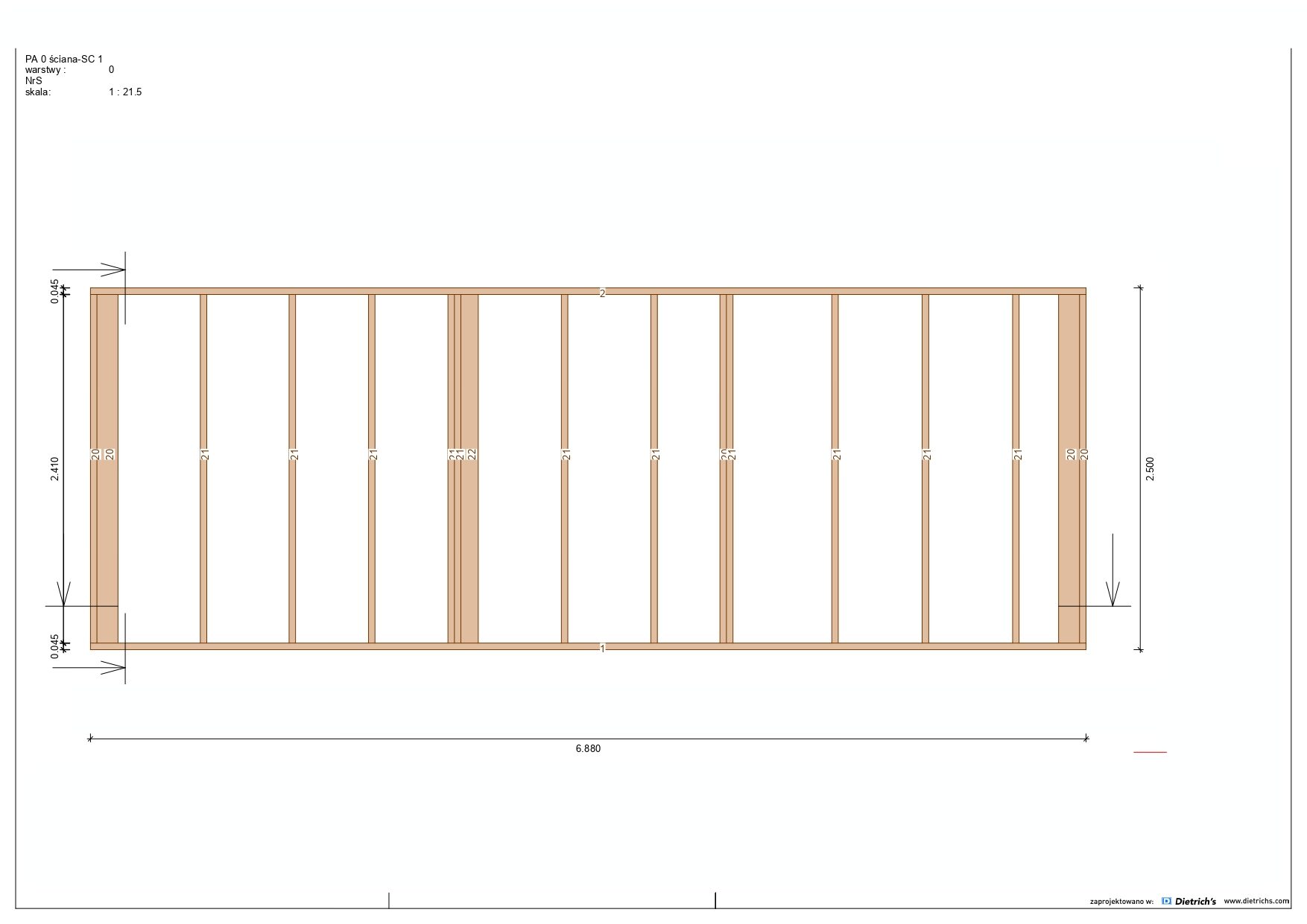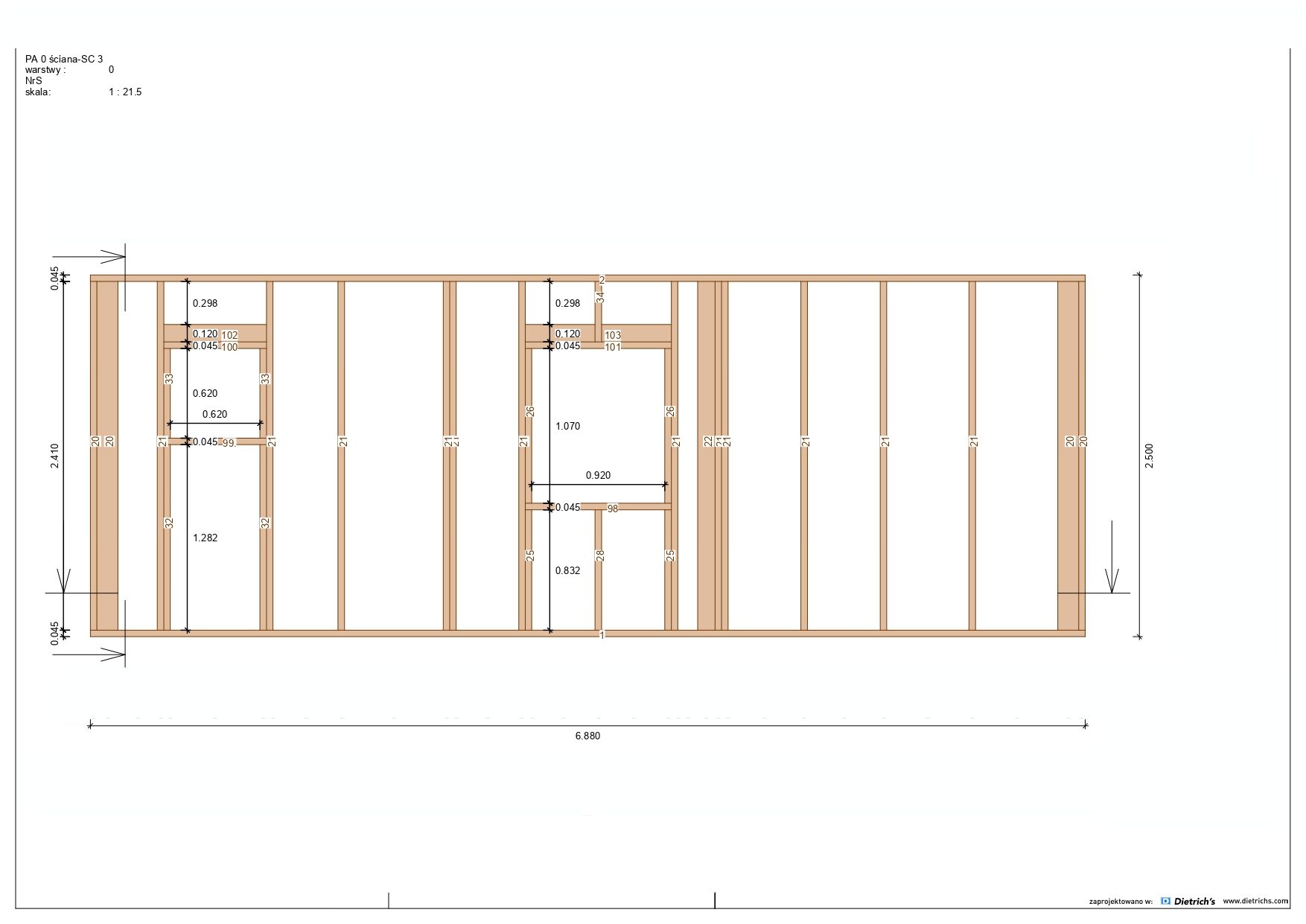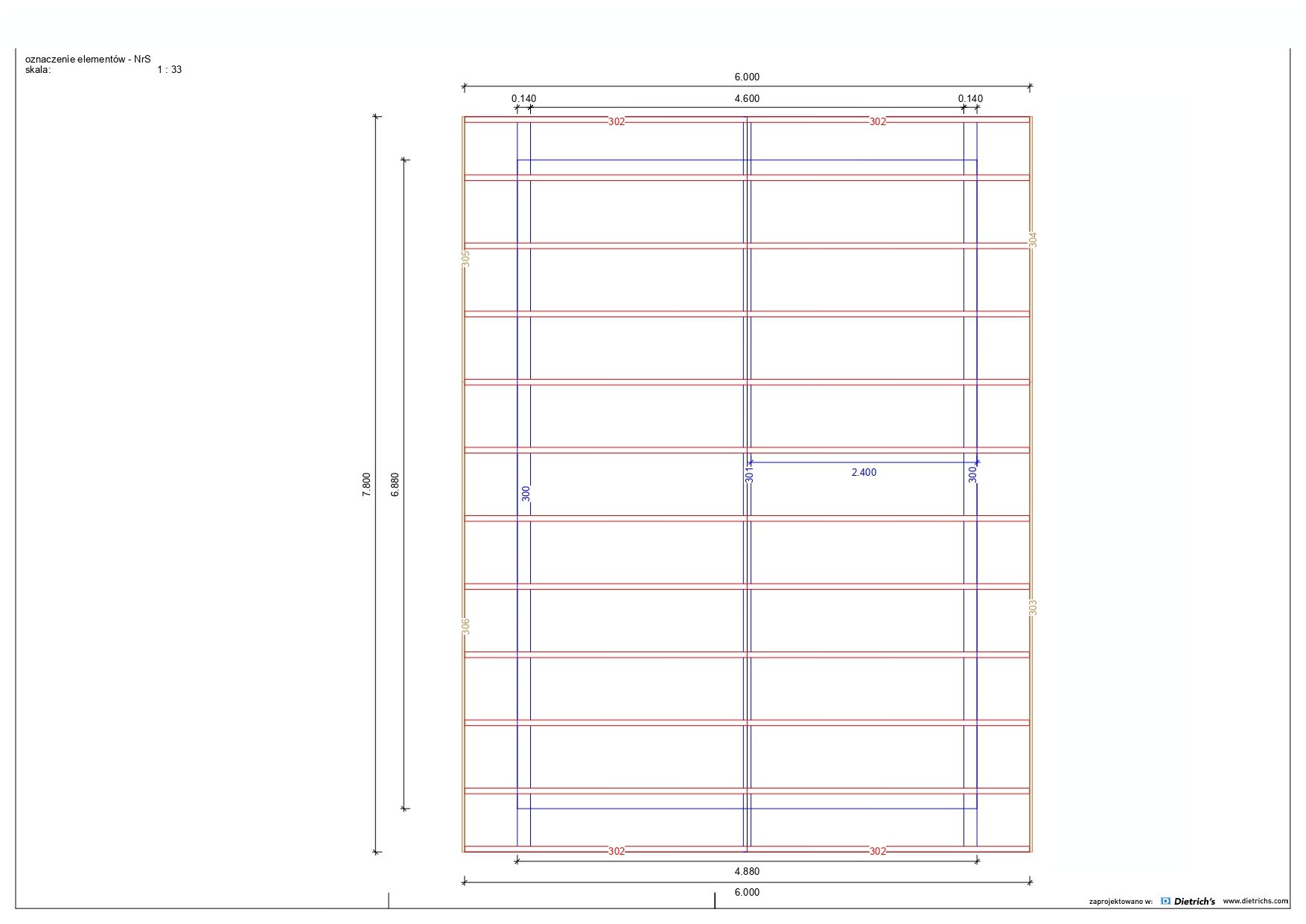 Większość belek użytych w konstrukcji ma grubość 145 mm x 45 mm.