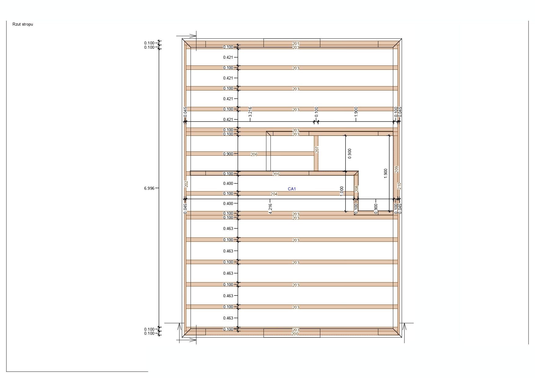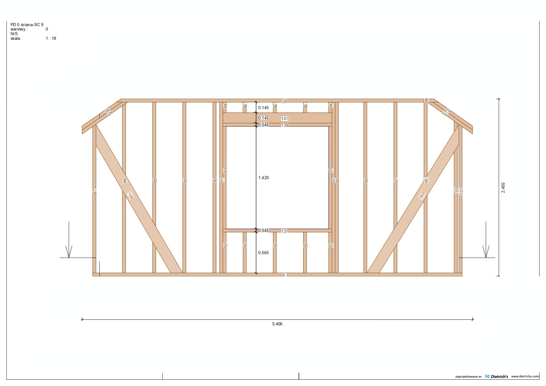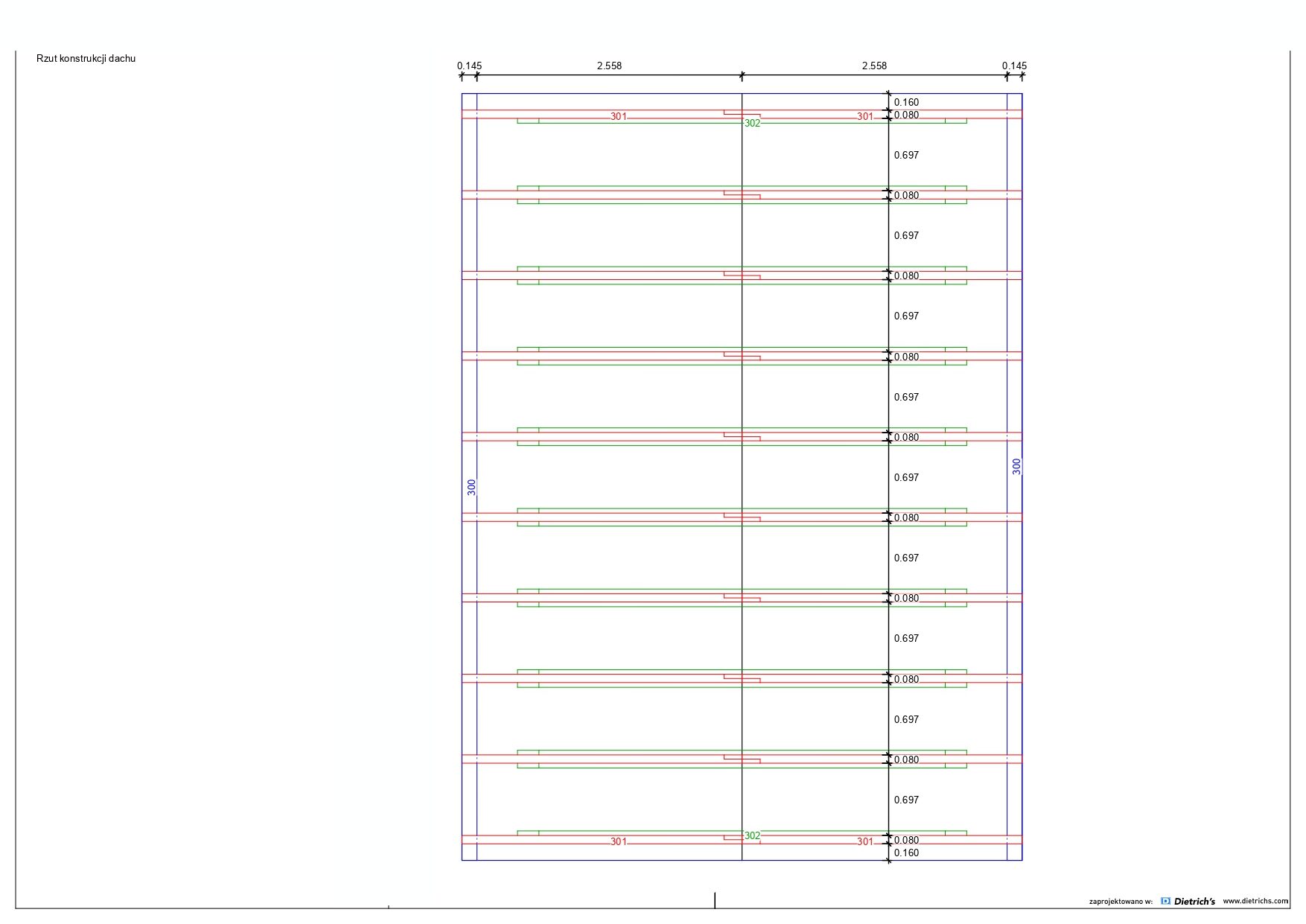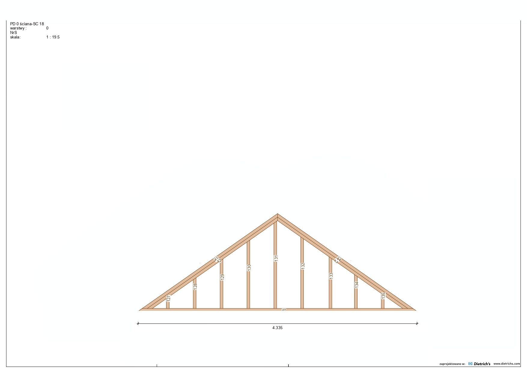 Większość belek użytych w konstrukcji ma grubość 145 mm x 45 mm.