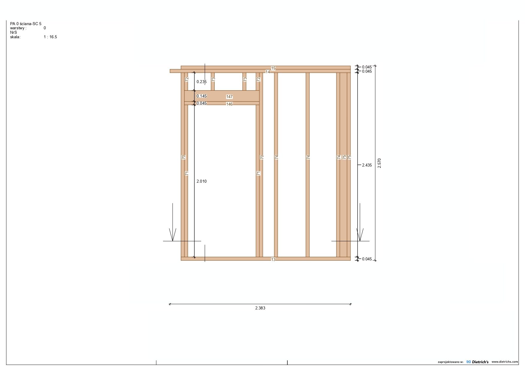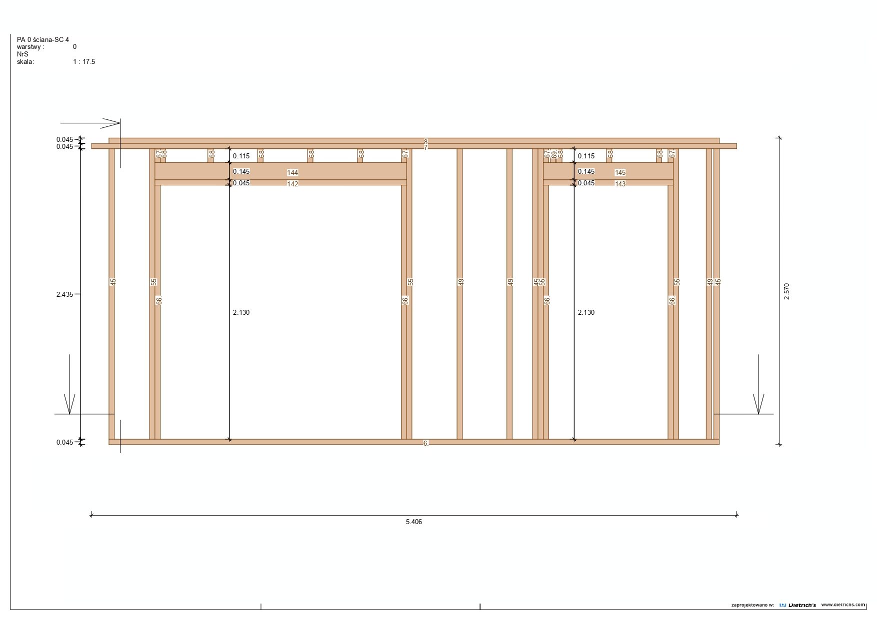 - Konstrukcja szkieletowa z drewna certyfikowanego C24 – świerk skandynawski